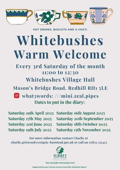 Thank you to everyone that attended the Whitebushes warm welcome at the village hall. It was great to see so many people coming together for a cuppa and chat. .